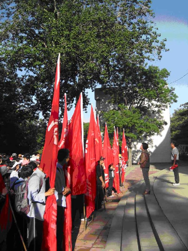 上午7点,黄艳校长做了动员讲话。7点半,同学们在校旗、团旗和班旗的指引下,以班级为建制,队列整齐,精神昂扬地向目的地进发。