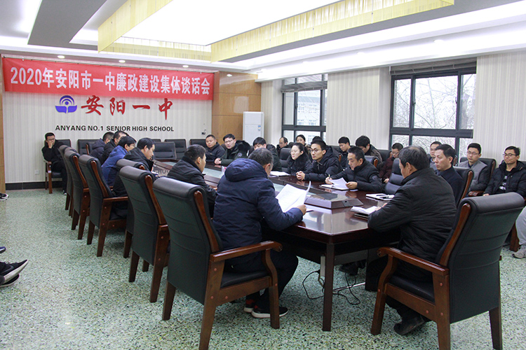 为加强学校党风廉政建设,持续推进全面从严治党,1月15日下午,我校在综合楼5楼会议室召开廉政建设集体谈话会。会议由党委委员陈朝阳主持,党委书记崔彦军发表讲话,领导班子成员及全体中层参会。 陈朝阳副校长首先宣读了《中共安阳市纪委〈关于对五起违反中央八项规定精神典型案例的通报〉》和《中共安阳市教育局党组关于2020年元旦春节期间加强党风廉政建设的通知》,提醒大家要严于律己,心中有戒,做人清白,干事尽责,敢于担责。 崔彦军校长强调,学校领导干部要从学校的实际工作出发,在与学生家长、培训机构、书商、联考公司的接触中,在工程招投标过程中,都要洁身自好,做好廉政风险点防控,管好下属和家人。崔校长要求学校领导干部要以身作则、率先垂范,守政治纪律、讲政治规矩,不断加强作风建设,树好教育工作者的良好形象,营造风清气正的育人环境。