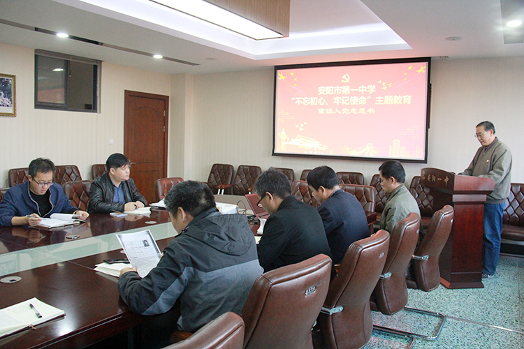 10月31日下午,安阳市“不忘初心、牢记使命”主题教育第十巡回指导组李书德同志一行4人,来到安阳市第一中学指导主题教育工作,并观摩指导我校领导班子对照党章党规找差距专题会。 在学校领导的陪同下,指导组参观了我校的红色教育基地——校史馆及“共产党员先锋岗”心理健康教育中心。随后,来到党员活动室,观看了我校为寻找教育初心拍摄的纪录片选集,并观摩了理科支部第二党小组正在进行的“重读入党志愿书”活动。 4点半,我校领导班子对照党章党规找差距专题会正式开始。崔彦军校长,王国卿、陈朝阳副校长逐一发言,深度剖析自己对照《中国共产党章程》《关于新形势下党内政治生活若干准则》《中国共产党纪律处分条例》检查出来的问题,深入剖析产生问题的思想根源,又提出了今后努力方向和整改措施。随后本着对同志负责的态度,严肃开展批评和自我批评,咬耳扯袖、提醒警醒。 李书德同志对此次党章党规找差距专题会进行了点评总结,认为我校主题教育活动整体开展得比较扎实,达到了预期的效果。李书德还提出了几点建议,一是要树立终身学习的理念,切实让习近平新时代中国特色社会主义思想入心入脑;二是要全面检视,真找实查,利用好批评与自我批评的武器;三是检视问题,立查立改,解决师生最急、最忧、最盼的问题。 学校领导班子表示,将继续扎实开展“不忘初心牢记使命”主题教育活动,并以此为契机,推动学校各方面发展,落实立德树人根本任务,以培育和践行社会主义核心价值观为根本,不忘初心,砥砺前行,努力办好人民满意的教育。