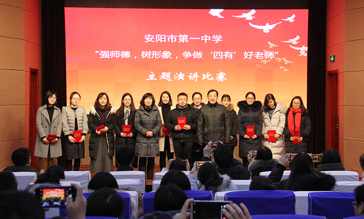 为深入学习贯彻党的十九大精神,全面加强新形势下师德师风建设,1月4日下午我校在实验楼4楼报告厅举行了“强师德,树形象,争做‘四有’好老师”主题演讲比赛。