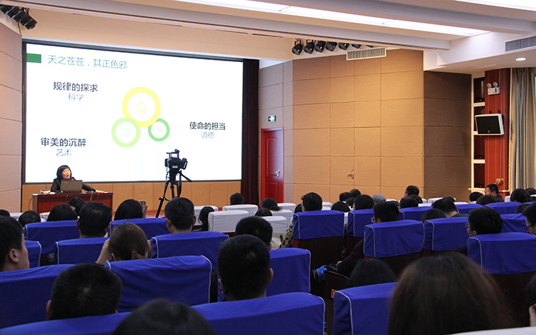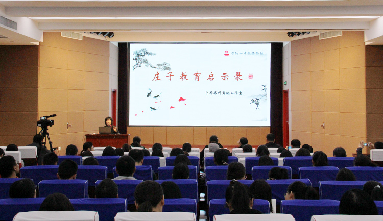 4月11日下午,黄艳校长在实验楼4楼报告厅为我校部分教师带来一场题为《庄子寓言的教育启示录》的讲座。 郭沫若说中国文学史的一大半都与庄子有关。黄艳校长从“庄子其人”讲起,解读了庄子对教育影响的可能性。庄子的思想是对人独立价值的探求,具有浓厚的“人文主义”特征,对治疗当今教育“人的迷失”的症候有积极的作用。 黄校长向大家分享了自己从庄子思想中内化的教育启示:教育亟需“去功利化”,学校要办人民满意的教育,更要办对民族未来负责的教育;体验是对生命独特的尊重、对生命自主性的承认、对生命成长性的促进,学校应该尊重体验、想方设法提供丰富的体验机会和场景……在场的老师们不仅欣赏了中国传统文化的思想之美,更启发了自己在教育观念上的新思路。大家边听边记,纷纷表示收获良多。 黄艳校长是中原名师、河南省特级教师、河南省名师,在教育上有自己的独到见解。2016年,黄艳名师工作室的成立更为学校教师专业发展的指导、支持和示范起到了带动引领作用。 我校将2017-2018学年定为教师发展年,教师论坛是教师发展年的重要内容之一。上学期郭山老师曾在教师论坛精彩开讲,作了《营造学生喜欢的课堂——课堂教学暨课程开发点滴》的精彩报告,深受老师们的好评。教师论坛旨在鼓励学校资深教师总结教育教学经验,传播先进教育教学思想,引领资深教师进入教育教学的更高境界,为青年教师起到良好的示范作用。