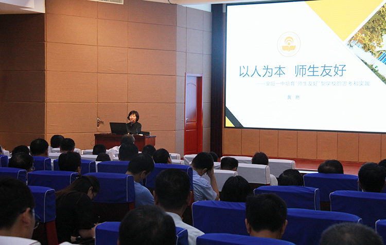 8月27日上午,安阳市新修订普通高中课程方案培训会,在我校实验楼4楼报告厅举行,来自各县区教育局的主管局长,和近百名校长、教研员参加了此次培训。 黄艳校长作为特邀主讲人,参加会议并做了《以人为本 师生友好》的专题报告,从办学理念、学校管理、价值认同等方面介绍了我校关于培育“师生友好”型学校的思考和实践。黄校长语言凝练,观点鲜明,关于维护教育生态均衡的观点得到与会领导的广泛认同。 会议第二阶段,市教研室李敬东主任为各位校长介绍了普通高中课程方案修订的背景及修订后的主要变化,并结合学科核心素养提出了教学建议。 下一步,我校将结合安阳市《新修订普通高中课程方案和课程标准》培训工作方案,开展校本培训,展开深入学习,推进课程改革,为应对普通高中课程方案和课程标准的修订,做好充分准备。