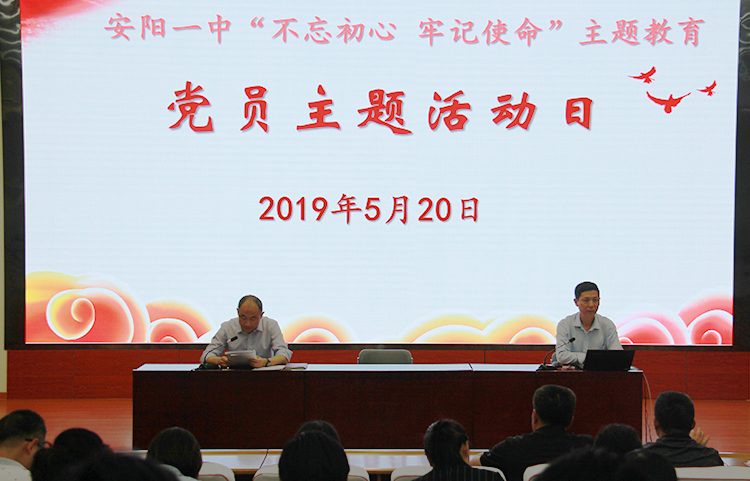5月20日党员活动日,我校在电教楼五楼报告厅开展“不忘初心 牢记使命”主题教育活动,会议由陈朝阳同志主持。