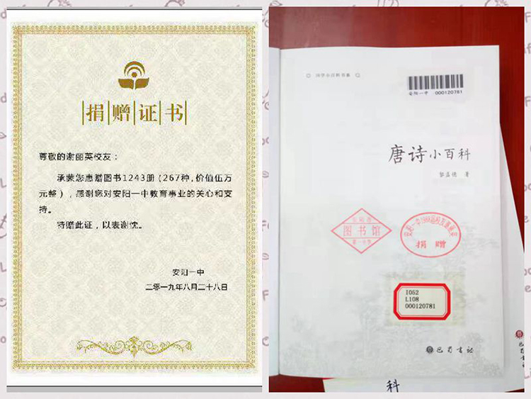 在刚刚过去的暑假,beplay.lol 1988届毕业生谢丽英女士向母校捐赠了价值5万元的图书。 去年是我校1988届学生毕业30周年,1988年毕业的同学们重回校园聚会。他们参观校园,和教过自己的老师共同在学校食堂就餐,一起栽下纪念树,一起回忆青春。1988届2班的谢丽英女士怀着对母校深厚的感情,向beplay.lol 红十字会助学基金捐款10万元。今年,谢丽英女士又向母校捐赠了价值5万元的图书。 beplay.lol 毕业生对母校感情深厚,不忘感恩母校,时时关注母校的发展。每年都会有毕业于不同时期的学生重回母校,看望老师、参观校园、捐款、捐书、栽种树苗、进行公益性讲座,用不同的方式来表达对母校的热爱,这同时也是beplay.lol 毕业生热心参与社会公益事业,积极回馈社会的表现。 祝愿beplay.lol 每一届毕业的同学在人生之路上发展得更好,为实现中华民族伟大复兴奉献更多的力量。