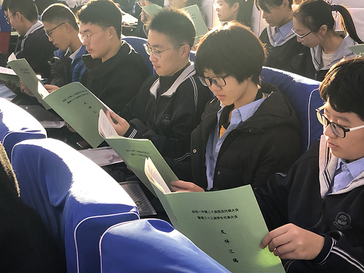2019年10月27日上午,安阳市第一中学第二十届团员代表大会暨第三十三届学生代表大会在实验楼四楼报告厅成功举行。 大会在庄严的国歌声中拉开序幕。德育处李恒主任致开幕词,对上一届学生工作进行总结并简要说明本次大会主要任务与流程,勉励广大学生干部牢记身份,积极学习,用实际行动引领新思想、新风尚。大会认真讨论并通过了第十八届团总支书记梁笑语、第三十一届学生会主席芦田的工作报告。大会竞选辩论环节,新一届团总支、学生会候选人积极踊跃表述自身志向,机智敏捷回答提问,充分展示了一中学子的扎实素养与勇敢担当。答辩之后与会代表投票,差额选举出第二十届团总支委员和第三十三届学生会委员。计票期间,李恒主任进行了学生干部培训,强调作为学生干部要做到以身作则,严格遵守校规校纪,牢记责任与担当意识,拥有大情怀和大格局,树立积极向上的人生观和价值观。 我校在德育工作中一直坚持以学生为主体,每年都会定期举行团员代表大会和学生代表大会。旨在引导学生积极参与学校管理,群策群力共建美好校园。同时我校利用会议平台树立榜样,用优秀学生引领校园新风尚,弘扬我校“崇尚科学、志存高远、不尚浮华”校风,落实我校全面育人的办学宗旨,展示我校“全国文明校园”风采。