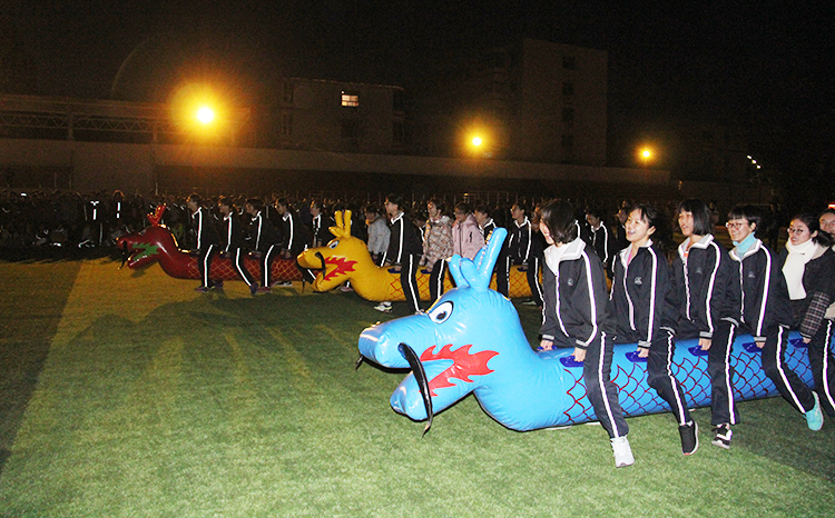 为丰富高三同学课余生活,增强身体素质,缓解学习压力,12月5日—7日我校高三年级在体育场举行了体育比赛。 比赛分为两个部分:集体跳大绳和旱地龙舟。跳绳比赛有男子组、女子组和男女混合组三个组别,每组10人参赛。同学们以班级为单位,在4分钟内集体跳大绳,统计数量。旱地龙舟更是个考验集体凝聚力和团队默契的活动,伴随着啦啦队响亮整齐的口号,同学们架着龙舟快速通过终点,欢笑声、呐喊声充满了校园。