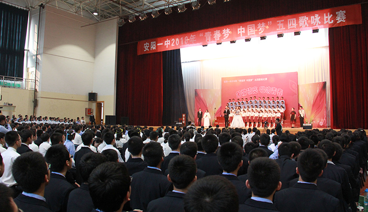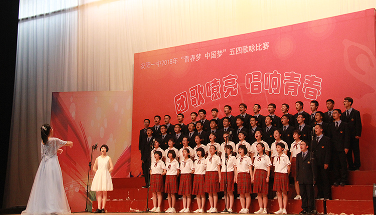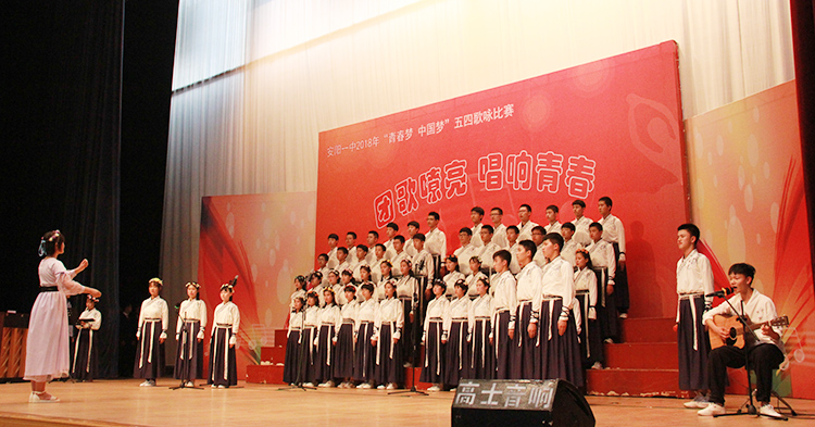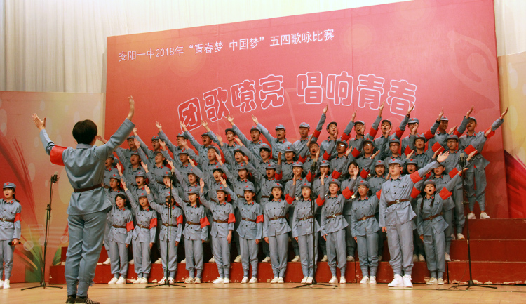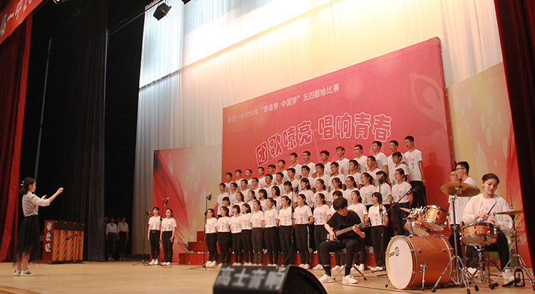 为大力弘扬社会主义核心价值观,纪念五四运动99周年,4月26日和27日下午,我校一、二年级两个组别在体育馆举行2018年“青春梦·中国梦”五四歌咏比赛。 高一、高二年级共计28个班级参与了此次比赛。经过精心的排练和准备,同学们用整齐别致的服装、稳健的台风和嘹亮的歌声点燃了整个校园。为了达到更好的演出效果,同学们还各出奇招,将京剧表演、现代舞、民族舞、武术、说唱等元素融入到合唱表演中来,独具匠心的编排和激情四射的表演,让整场演出精彩纷呈、高潮迭起、掌声不断。经过激烈的角逐,最终高一年级5班、12班,高二年级4班、11班拔得头筹,斩获一等奖。 歌咏比赛丰富了同学们的校园文化生活,带来了音乐的洗礼和艺术上的熏陶,进一步增强了同学们的集体荣誉感和班级凝聚力,展现了我校学生积极向上、朝气蓬勃的精神面貌。