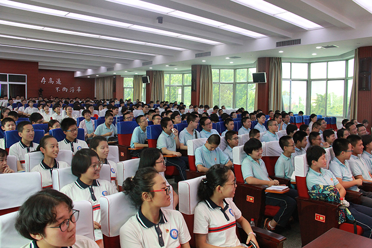 8月2日、3日上午,我校在实验楼四楼报告厅开展"与清华北大学子面对面"活动,2018届19名考入清华北大的学子与我市优秀准初三学生进行交流,分享高中生活体验。 活动中,同学们分享了自己高中生活和学习中的点点滴滴。侯玫君和马潇菁同学细数了校园内的各种植物和果实,乔心妍同学介绍了学校开设的各种选修课程,李其贤同学介绍了学校的各项文体活动,丰富多彩的的高中生活让台下的准初三的同学们心驰神往。 针对学习中的困难和疑惑,王璞建议大家不要放弃薄弱学科,多与老师沟通;张文鼎同学则分享自己平衡学习与娱乐的技巧;张瀚文同学希望大家在刷题之余,能够及时思考和总结。学长学姐们的精彩分享,引得台下掌声阵阵。活动现场互动频繁,气氛热烈,同学们提出的各种小困惑得到一一解答。 我校利用每年暑假开展"与清华北大学子面对面"活动,组织当年考入清华北大的学生与广大优秀初中生面对面交流,激励广大优秀初中生树立远大理想,奋力拼搏,将来为国家、为社会做出更大的贡献。
