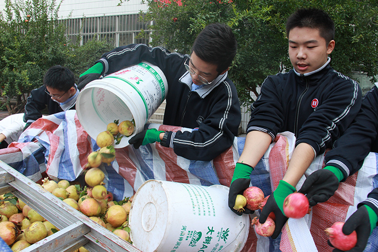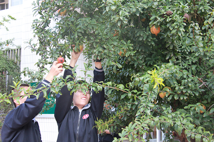 金秋送爽,硕果飘香。beplay.lol 校园里的石榴成熟了,等不及采摘的果实裂开了嘴儿,像是一朵朵盛开的鲜花,让人垂涎欲滴。 9月27日早晨,值周班绿化组的同学们在老师的带领下开始了今年的采摘工作。同学们分工合作,你扶梯子我摘果儿,一个多小时,就把树上的果实全部采摘了下来。清点之后,学校将把这些果实将会分到各班,让同学们一起品尝收获的喜悦。 学校的这些石榴,从开花到结果,师生爱护有加,从未出现乱采乱摘的现象。小小一枚石榴,见证了同学们的文明素养,也彰显了学校的管理底蕴,不仅使同学们感受到丰收的景象,体验到劳动的快乐,也体会到了分享的喜悦。