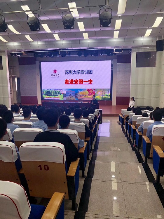 4月17日下午,深圳大学文化产业研究院研究员、深圳大学管理学院市场营销系张宁教授,来我校做招生宣讲,并作《专业?VS职业?》主题报告。 张教授先是以她自身的求学经历,通俗地讲解了职业、专业和事业的关系。通过介绍自己的梦想以及少年时期对深圳大学的向往,让同学去思考自己想要的生活,树立奋斗的目标。随后,以多媒体视频的形式介绍了深圳大学的校园风貌,学科设置,就业前景,知名校友等。视频中时尚现代的学校设施,以及自由开放的校风引起同学们阵阵惊叹。知名校友马化腾的介绍,更是让现场气氛达到了最高兴奋点。在最后的一对一问答环节中,张教授回答了同学们关于深圳大学,及求学与人生规划等方面的问题。 我校十分重视学生的全面素质的提高,通过高校到校宣讲,借助高校资源,使学生具有更开阔的视野,更开放的、更现代化的态度,激发学习动力,助力学生全面发展。