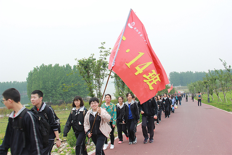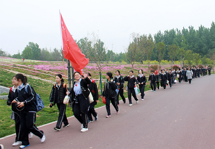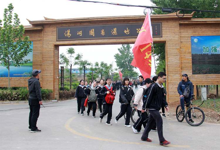为调节紧张的学习节奏,培养学生的拼搏精神和团队合作意识,亲近大自然,陶冶学生情操,4月27日,我校高三全体师生举办了“半程马拉松”徒步活动。 经过多次筛选,我校最终选定了汤河国家湿地公园和周边村落作为远足地点。27日早上6:30,高三全体师生乘坐大巴车前往汤河国家湿地公园。在景区入口处稍作整顿后,大家开始徒步行进。一路上,红旗招展,秩序井然,同学们情绪高涨,一路高歌,用矫健的步伐踏着青春的节奏,共同经历这次集体之行。全体高三老师、体育老师、学校相关部门负责人、交警、医护人员全程陪伴,全方位保障学生的安全。