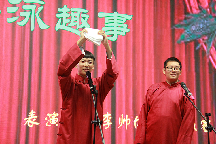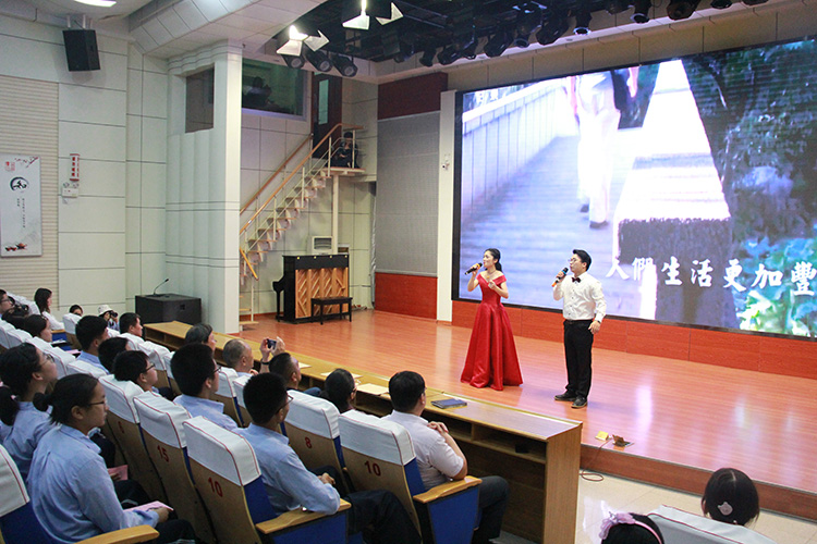 9月29日晚,我校在电教楼5楼报告厅隆重举行庆祝新中国70周年“我爱我的祖国”国庆文艺汇演。 学生乐队摇滚弹唱《花火》震撼开场,燃爆了整个舞台;王雨田同学身姿曼妙,仿佛舞台上的精灵,轻盈跳跃中诠释了《九儿》的不屈抗争;话剧《险象环“声”》笑料百出,演员们形神兼备,夸张的表演让观众们捧腹不止;辛兰芳老师钢琴独奏《童年的回忆》,熟悉的曲调从指尖飞出,让人身心愉悦;小白杨合唱团用歌声描绘祖国的大好山河,高唱《我和我的祖国》。随着现场的爱国热情不断高涨,全体演职人员和观众自发大合唱,晚会在《歌唱祖国》的雄壮歌声中落下帷幕。 今年是建国70周年,此次庆祝活动不仅丰富了校园文化生活,也展示出我校师生的艺术修养及朝气蓬勃、积极向上的精神风貌,广大师生也用自己的方式表达了对伟大祖国的深情祝福。