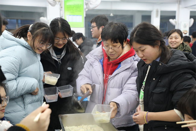 冬至俗称“冬节”,是我国农历中一个非常重要的节气。为大力弘扬中华民族优秀传统文化,丰富师生的校园文化生活,密切家校联系,12月22日,我校举办“忆传统、迎冬至”主题包饺子活动。3600余名师生及家长代表齐聚一堂,将上千斤食材制成美味可口的冬至大餐,仪式感满满。 上午,没有教学任务的老师按时到达餐厅,大家分工明确,动作娴熟,配合默契,有条不紊,可谓八仙过海各显神通。欢声笑语间让老师们在繁忙的工作之余拉近了彼此的距离,共同感受冬至浓浓氛围。 下午,食堂工作人员为每班分发馅料、饺皮,同学们以班为单位,分组包饺子,家长代表也加入其中,共度佳节。同学们在老师、家长的引领下学习如何包饺子,动作从开始的生涩到逐渐熟练,饺子变得愈发饱满。一排排独具特色的饺子很快就摆满了盘子,有的如“金元宝”傲然挺立,有的如“弯月”流畅优美,也有的如“小麦穗”晶莹饱满,现场欢声笑语,暖意融融。经过一番努力,热气腾腾的饺子终于出锅了。饺子皮薄馅嫩,鲜香的味道在舌尖绽放,师生吃得津津有味,其乐无穷。 时值冬至,同学们在劳动中感受到了传统文化的魅力,增强了集体协作的默契,体验到了劳动的乐趣,在自己动手、共同分享中收获了快乐与成长。我校坚持用德育活动传承中华传统文化,培养学生责任感和使命感,为学生终身发展奠定良好基础。 |