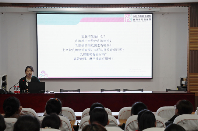 在“三八”国际妇女节来临之际,为增强女教职工的健康观念,提高关注自我、关注健康的意识,3月5日下午,我校特邀请安阳市妇幼保健院女性健康管理中心主任王凤娇到校做女性健康科普知识讲座。 王主任结合自己丰富的临床经验,从乳腺增生症讲起,围绕乳腺癌的高发人群、临床表现、筛查方法等方面进行了深入浅出、有针对性的讲解和科学的指导,倡导女教职工积极关注自身健康,定期检查,预防疾病。讲座结束后,王主任现场答疑解惑,进一步深化了在场女教职工对女性保健的重要性和必要性的认识。 整场讲座内容丰富,通俗易懂,受到一致好评。我校积极开展形式多样的暖心活动,打通关心、关爱、服务广大职工的“最后一公里”,有效提升教职工的归属感、幸福感、安全感。 |
